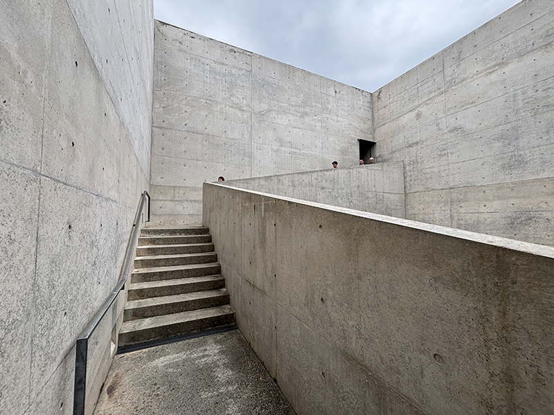 O museu por si só é uma obra de arte. O percurso entre uma sala e outra nos leva de volta ao ambiente externo, onde podemos observar o céu e a natureza junto às formas geométricas e o concreto bruto da arquitetura de Ando.