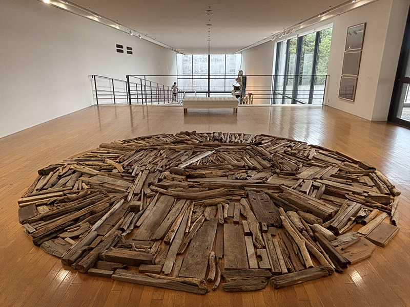 Obra de Richard Long em um espaço externo, integrando a exposição com a natureza ao redor.
