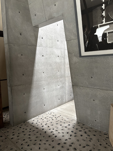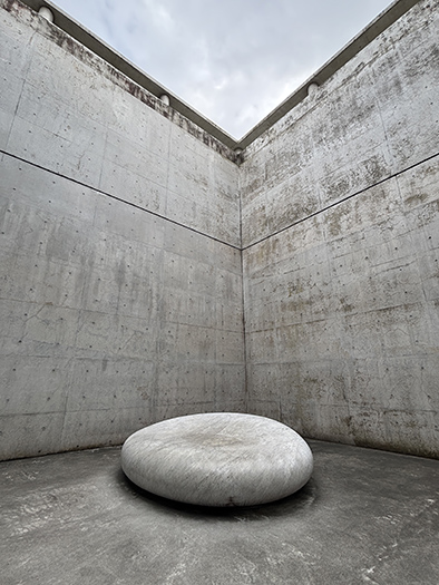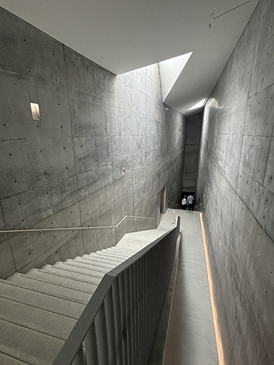 O museu por si só é uma obra de arte. O percurso entre uma sala e outra nos leva de volta ao ambiente externo, onde podemos observar o céu e a natureza junto às formas geométricas e o concreto bruto da arquitetura de Ando.
